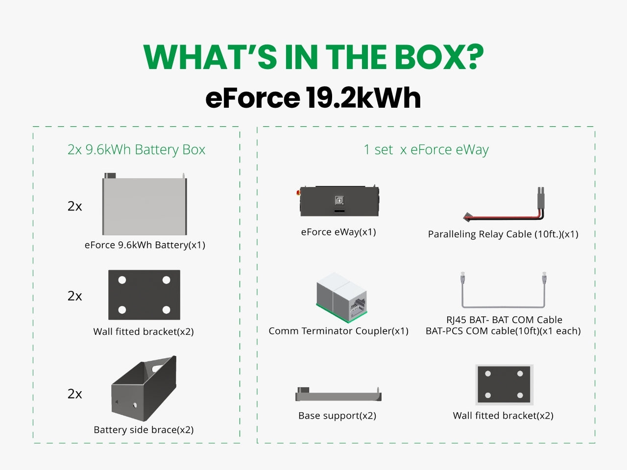 Power your home or small business with reliable, high-capacity solar energy. This bundle combines eForce 19.2kWh stackable batteries with the Envy True 12kW hybrid inverter, delivering flexible backup, off-grid, or grid-tied power.