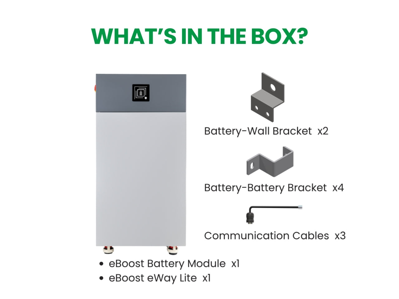 Each eBoost unit provides 16kWh of usable energy, perfect for single-inverter setups or compact installations where simplicity and efficiency matter most.