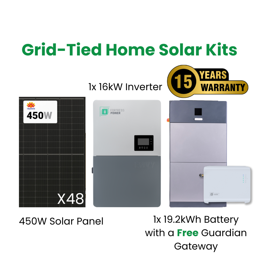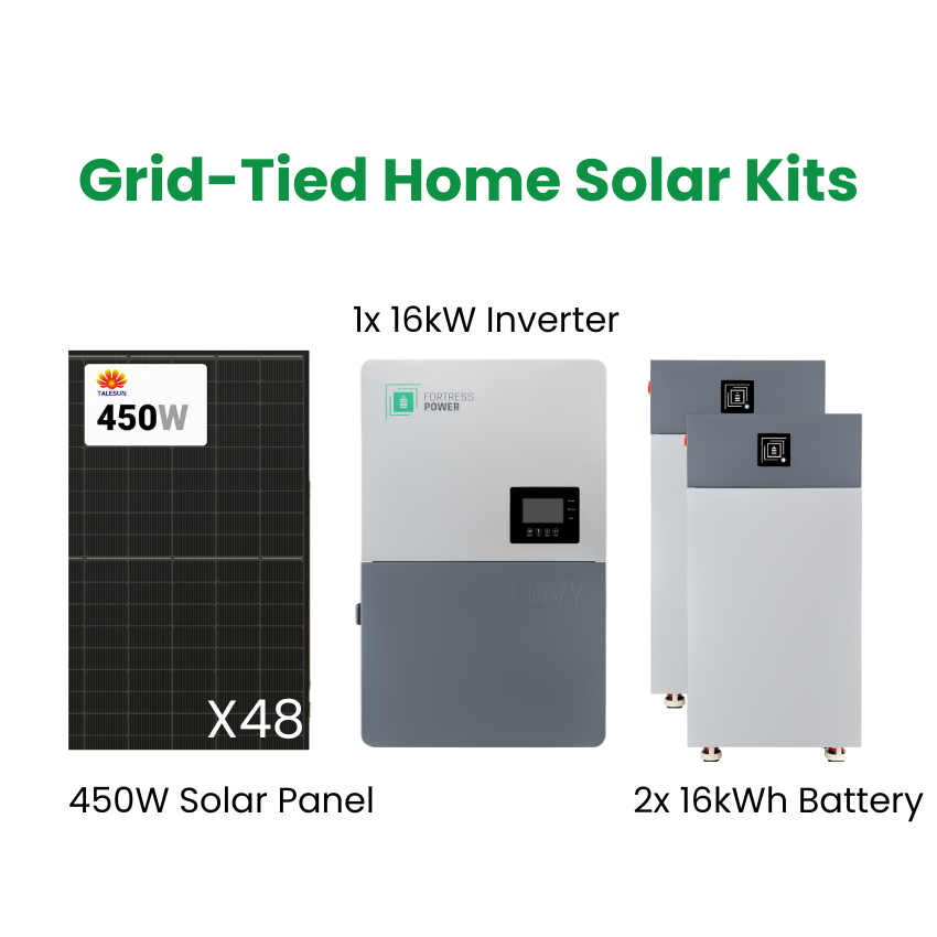 21.6kW Grid-Tied Solar Kit – Envy Duo 21 Inverter | eBoost or eForce Batteries | Solar Panels | 16kW Output