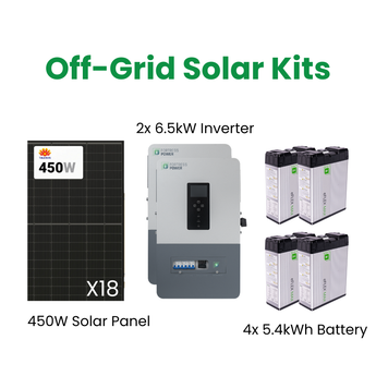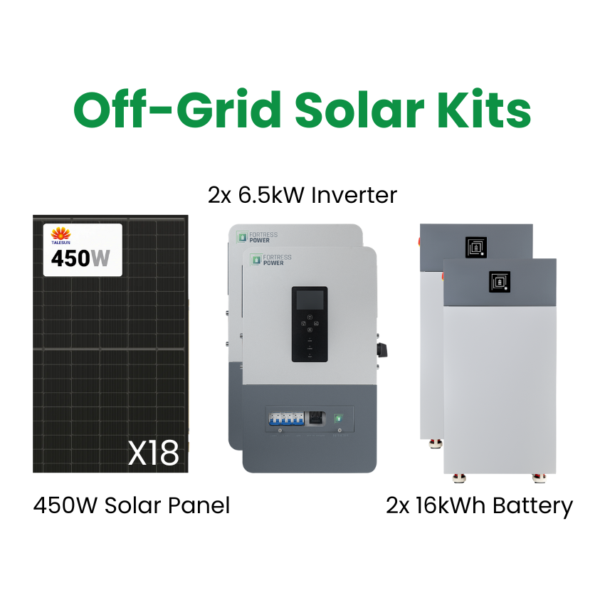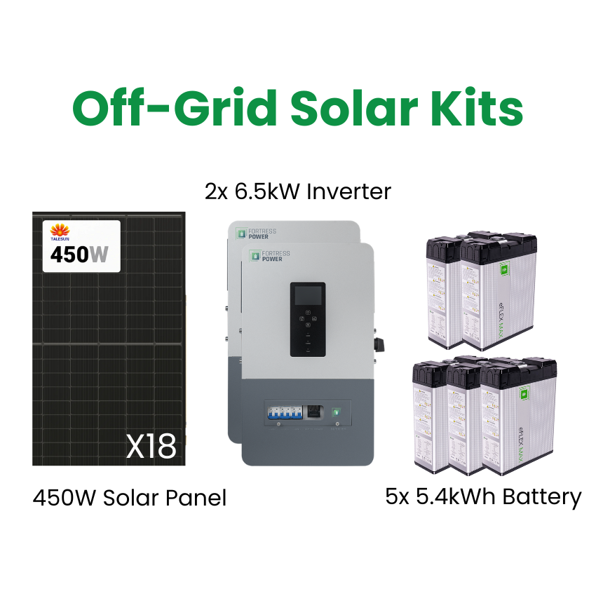 8.1kW Off-Grid Solar Kit with 2 Solo 6.5kW Inverters | 13kW Output | 21.6–32kWh Fortress Power Battery Storage | 18× 450W Solar Panels