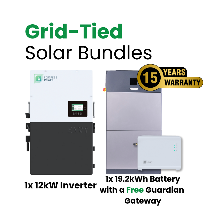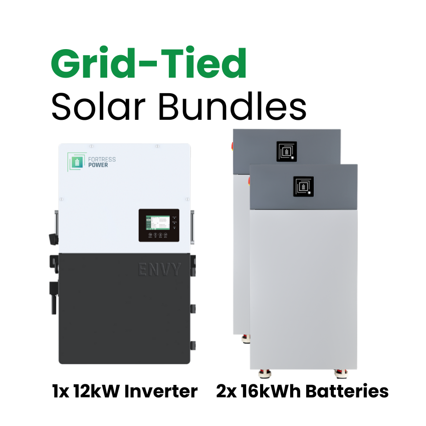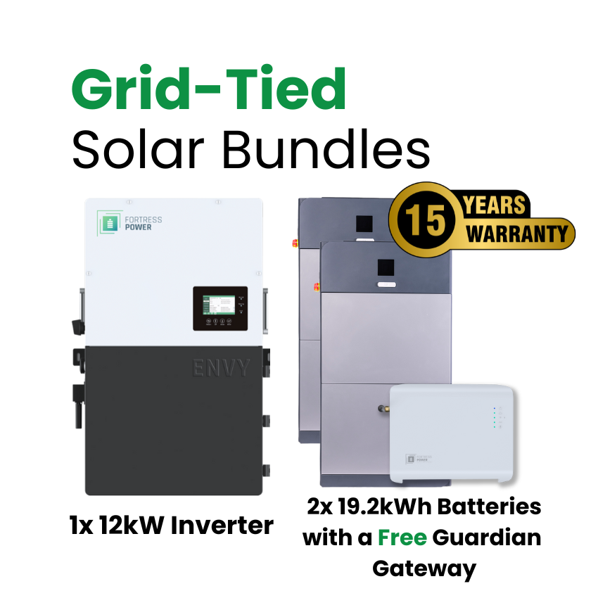 Grid-Tied Solar Bundle | Envy True 12kW Inverter | 16kWh-38.4kWh Fortress Power Batteries