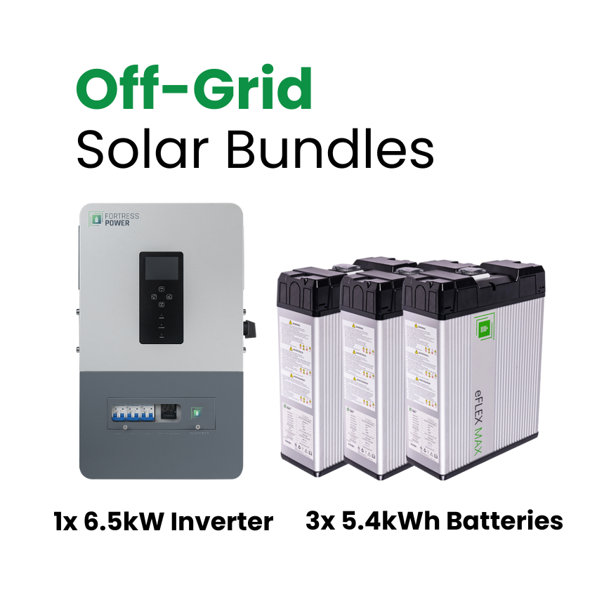 Off-Grid Solar Bundle | Solo 6.5 kW Inverter | 10.8–21.6 kWh Fortress Power Battery Storage